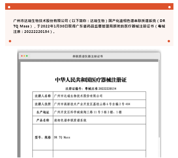 喜訊|達瑞生物液相色譜串聯(lián)質譜系統(tǒng)(DR TQ Mass)獲批上市!