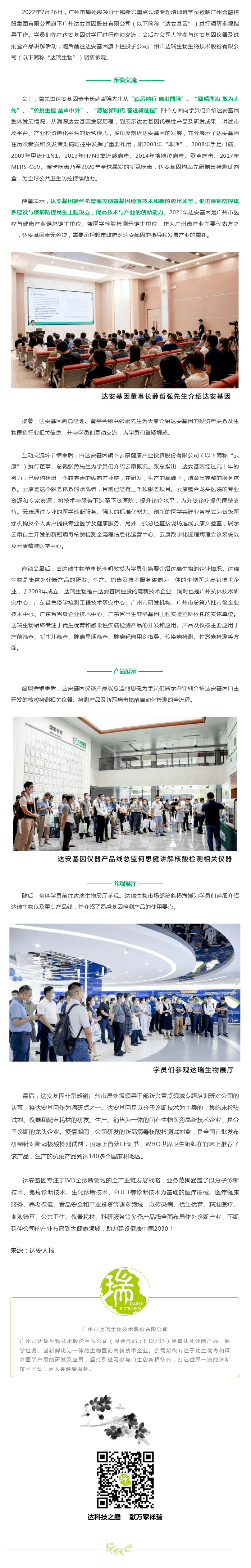 廣州市局處級領(lǐng)導(dǎo)干部新興重點領(lǐng)域?qū)n}培訓(xùn)班蒞臨達安基因調(diào)研指導(dǎo)