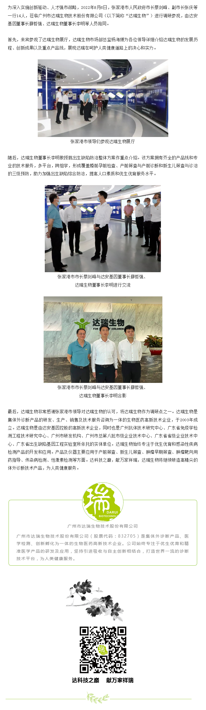 張家港市人民政府市長蔡劍峰、副市長張慶一行蒞臨達瑞生物調(diào)研參觀