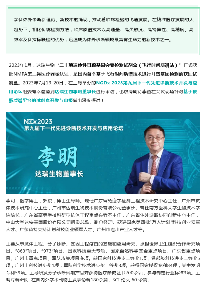 NGDx專訪|達瑞生物李明教授:聚焦優(yōu)生優(yōu)育領(lǐng)域,依托質(zhì)譜技術(shù)助力人類健康事業(yè)